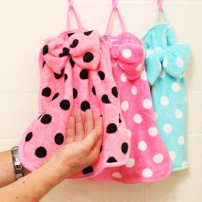 跨境擦手巾甜美蝴蝶结可挂式珊瑚绒擦手巾抹...