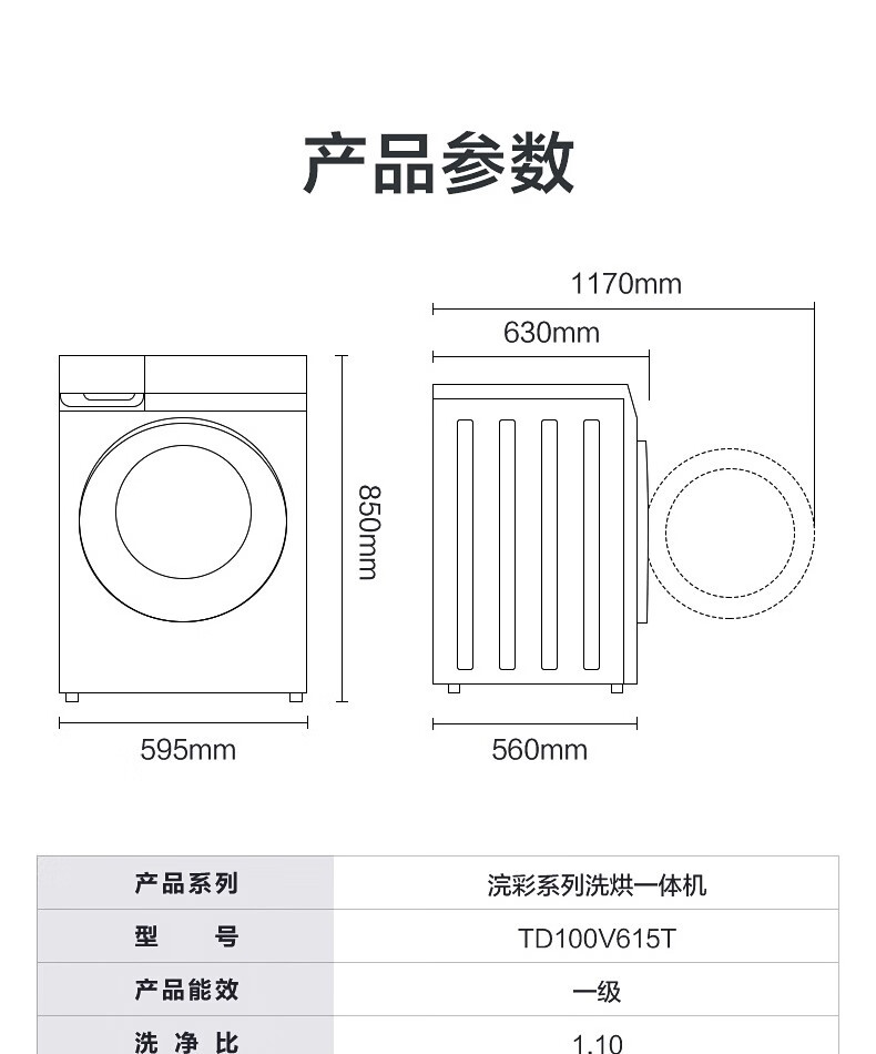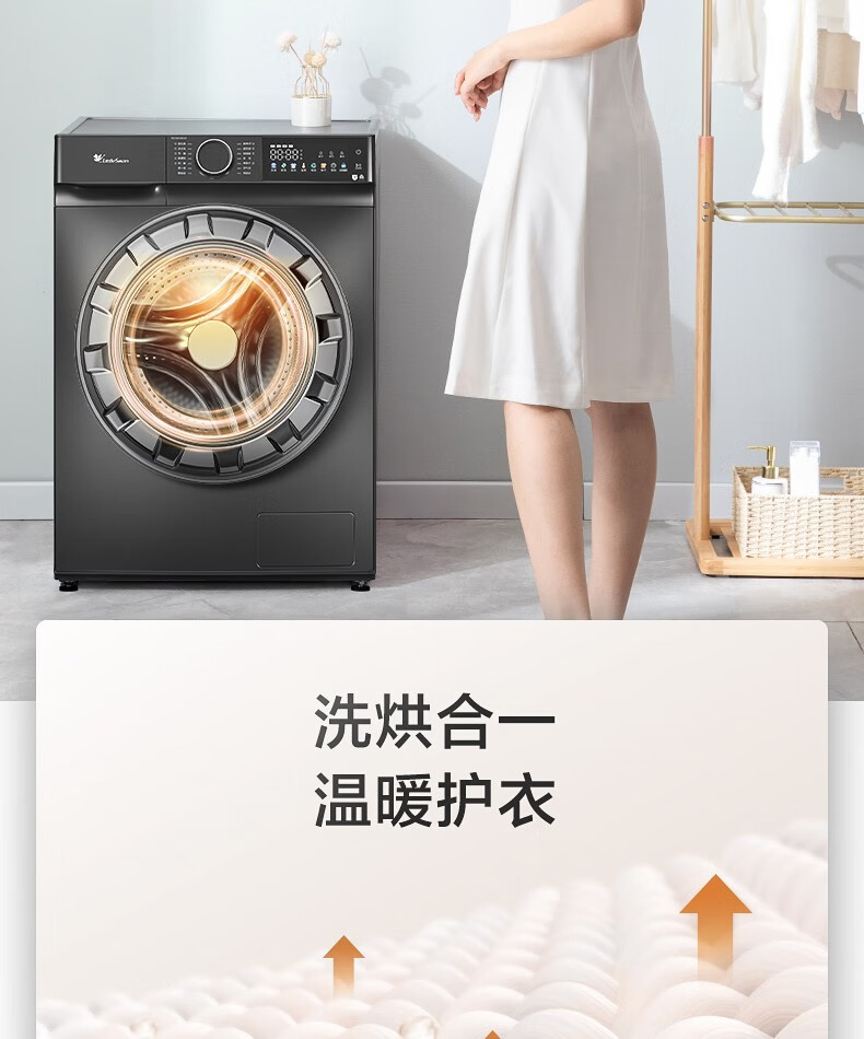 小天鹅(LittleSwan)洗衣机滚筒洗烘一体带烘干全自动 10公斤大容量银离子除菌彩屏以旧换新 1.1洗净比TD100V615T