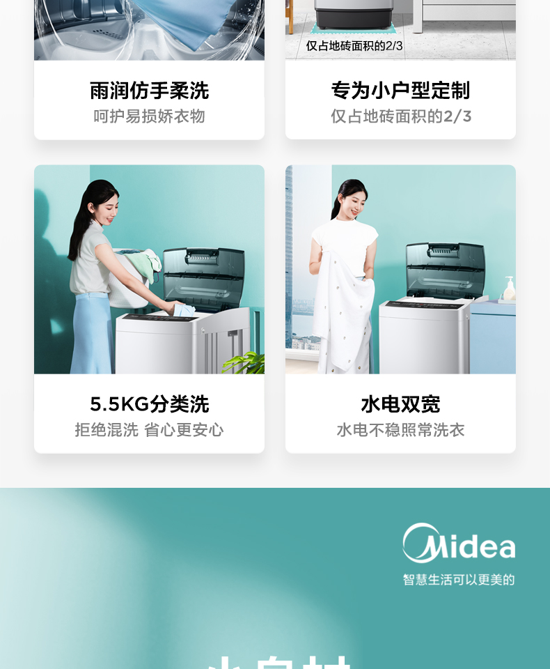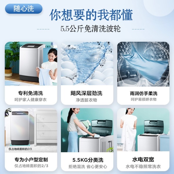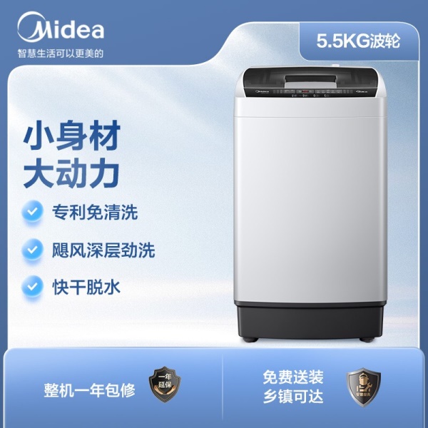 美的(Midea)波轮洗衣机全自动 5.5公斤 迷你洗衣机 品质电机 内桶自清洁 租房宿舍专用 以旧换新
