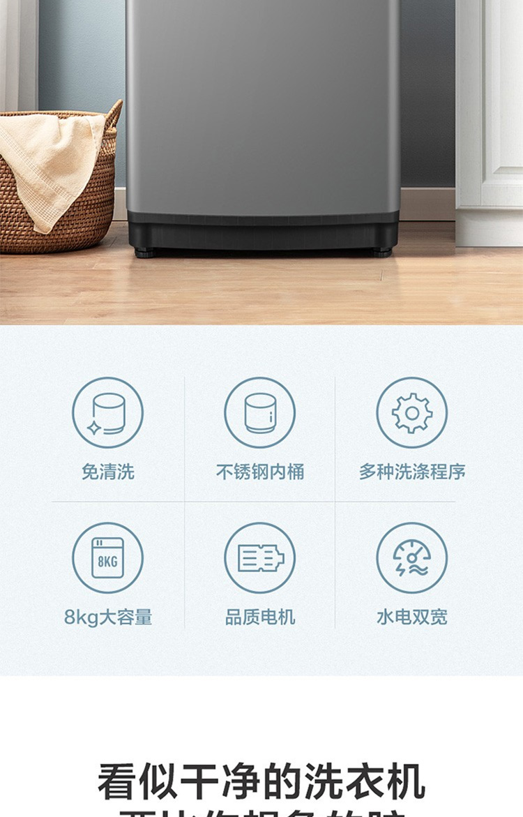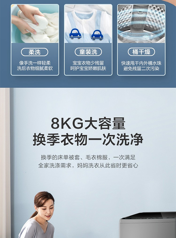 小天鹅(LittleSwan)8KG全自动波轮洗衣机宿舍家用大容量 洗脱一体 健康免清洗 品质电机