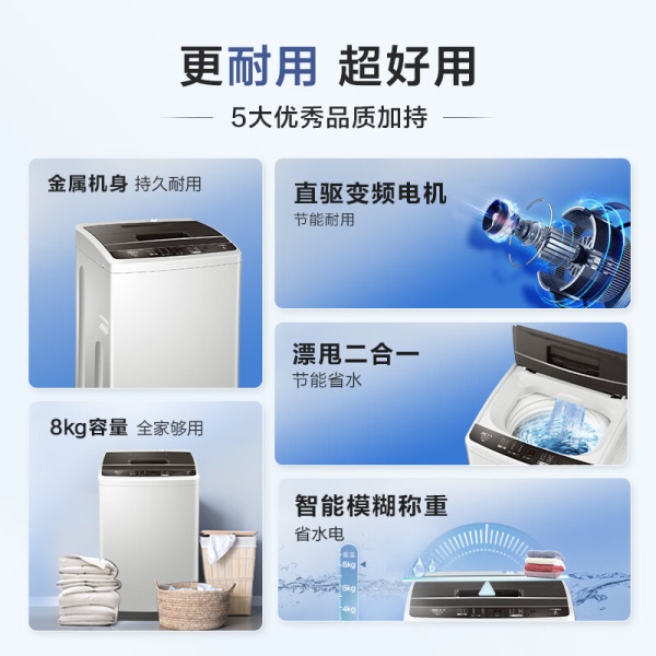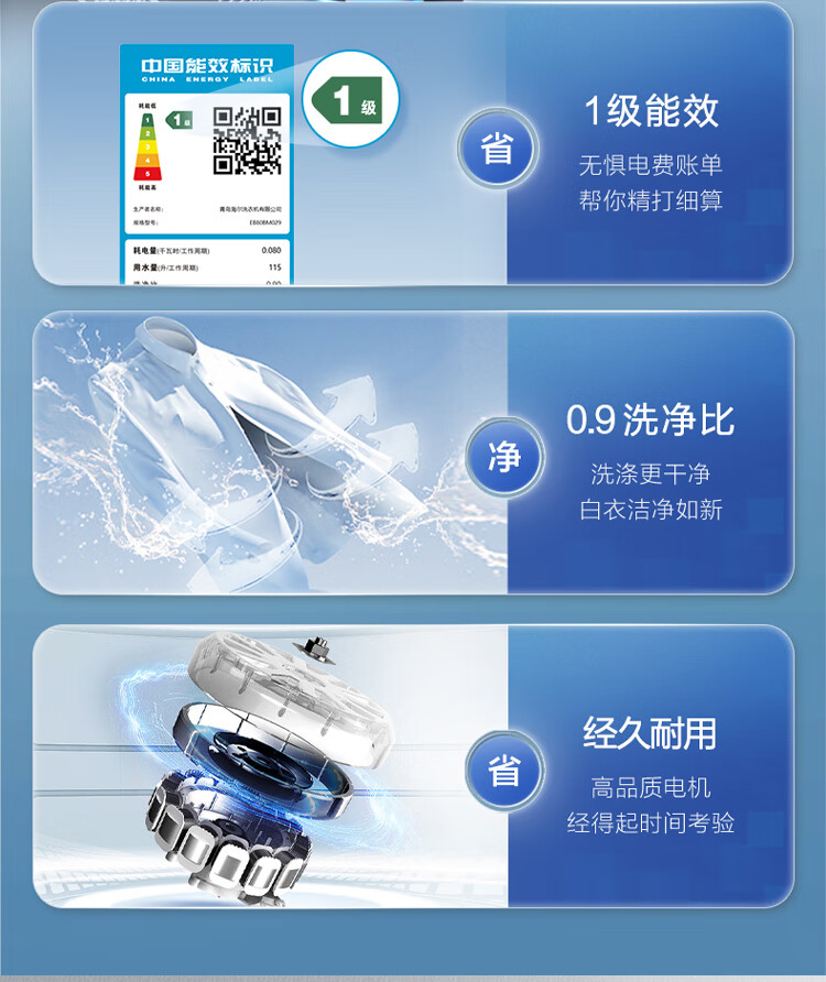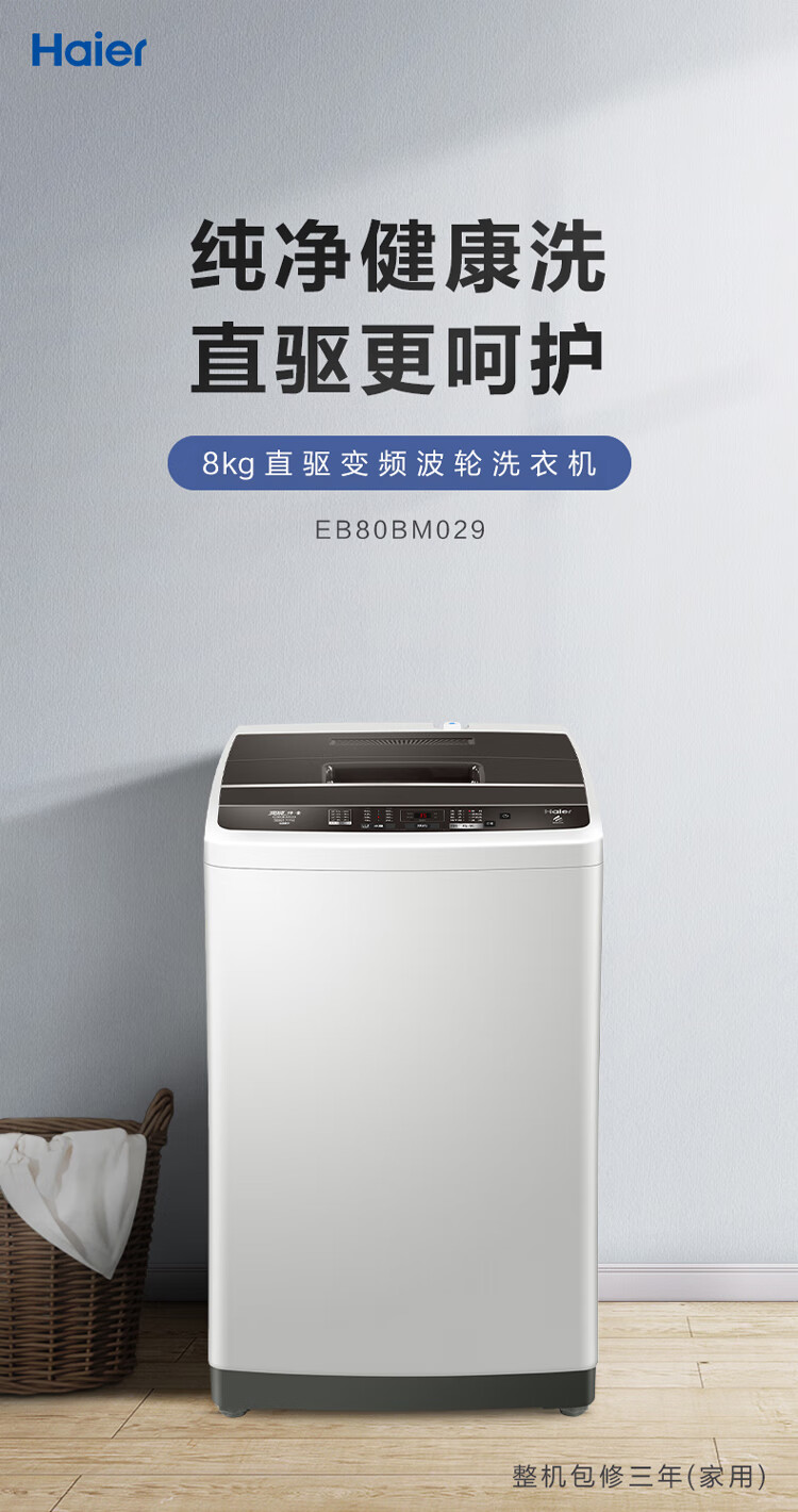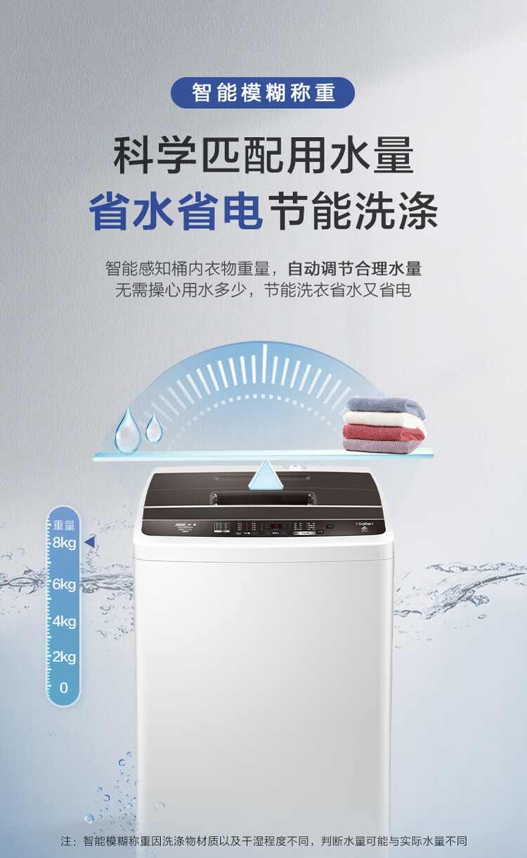 海尔(Haier) 波轮洗衣机全自动家电 以旧换新 脱水机 原厂品质 直驱变频强劲平稳 8公斤