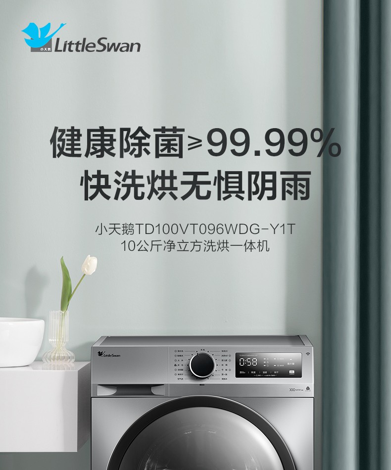 小天鹅(LittleSwan)洗衣机滚筒全自动 10公斤洗烘一体机带烘干除螨大容量智能家电以旧换新 TD100VT096WDG-Y1T