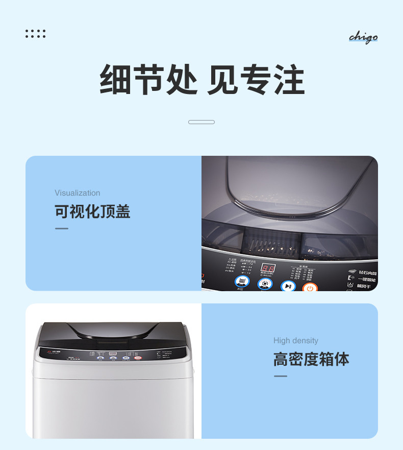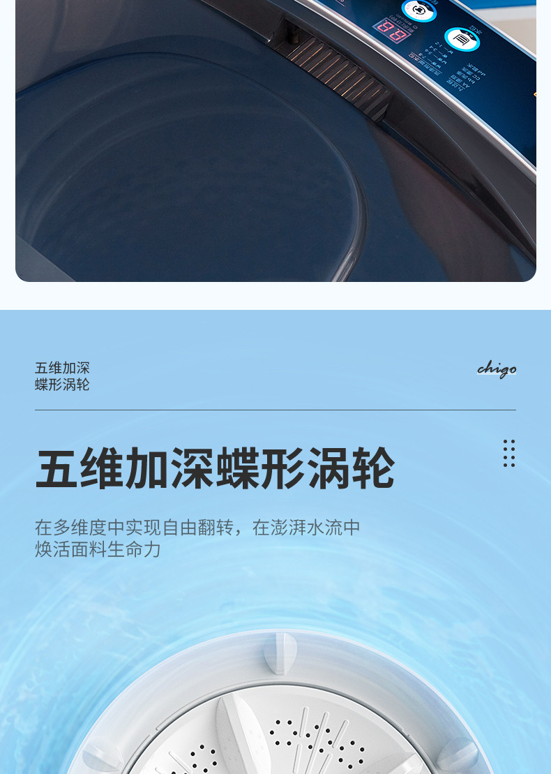 志高(CHIGO)全自动洗衣机 洗烘一体 大容量 智能波轮洗脱一体机 带风干功能