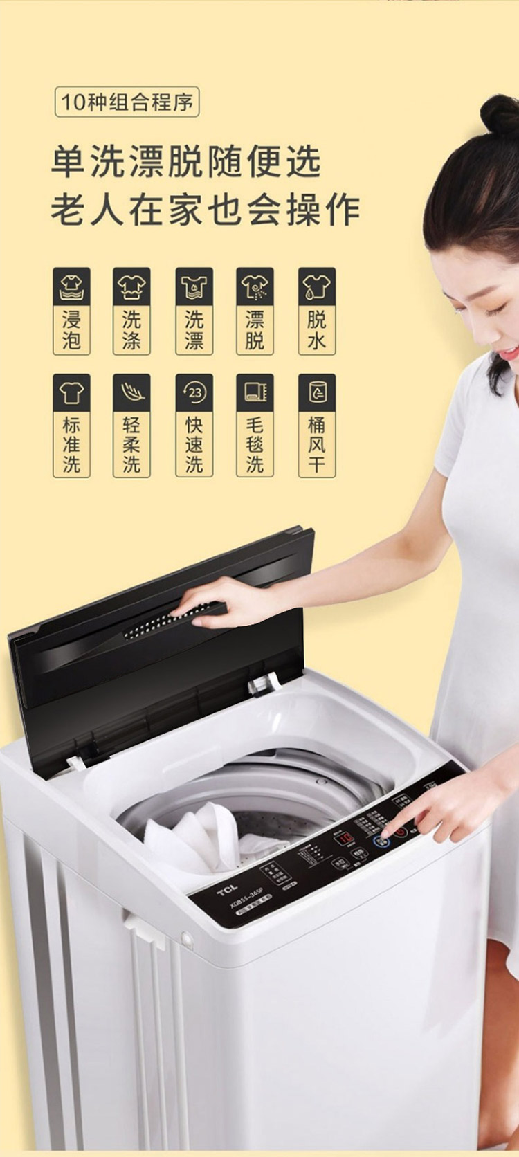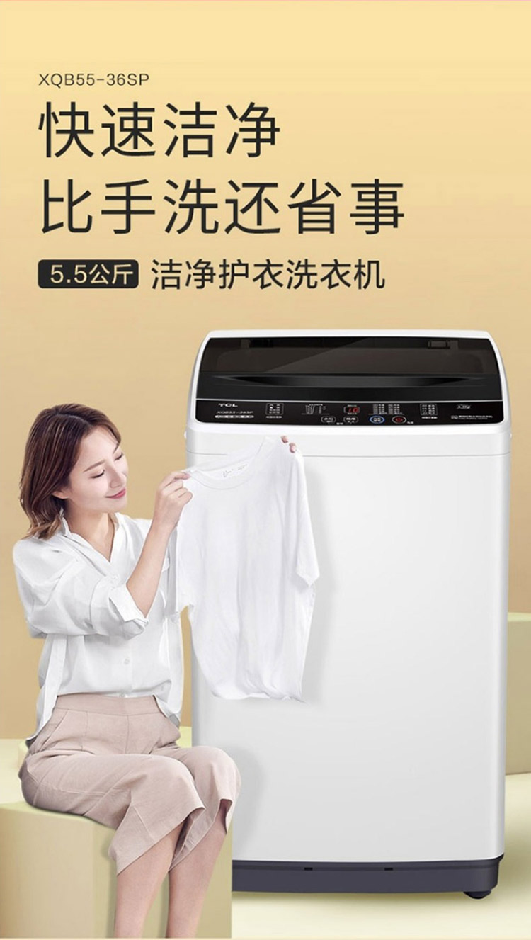 TCL 5.5KG波轮洗衣机宿舍租房神器小型迷你全自动洗衣机 一键脱水