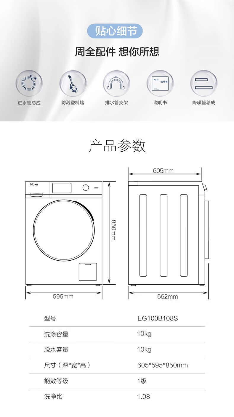 海尔洗衣机全自动滚筒10公斤大容量变频节能平稳租房 10公斤星韵银+巴氏除菌洗