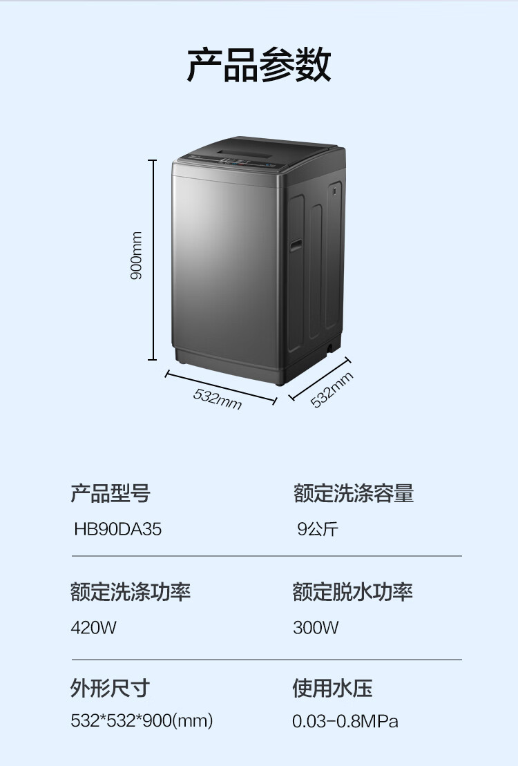 海信(Hisense)波轮洗衣机全自动 9公斤升级钛晶灰大容量 家用 出租房 宿舍