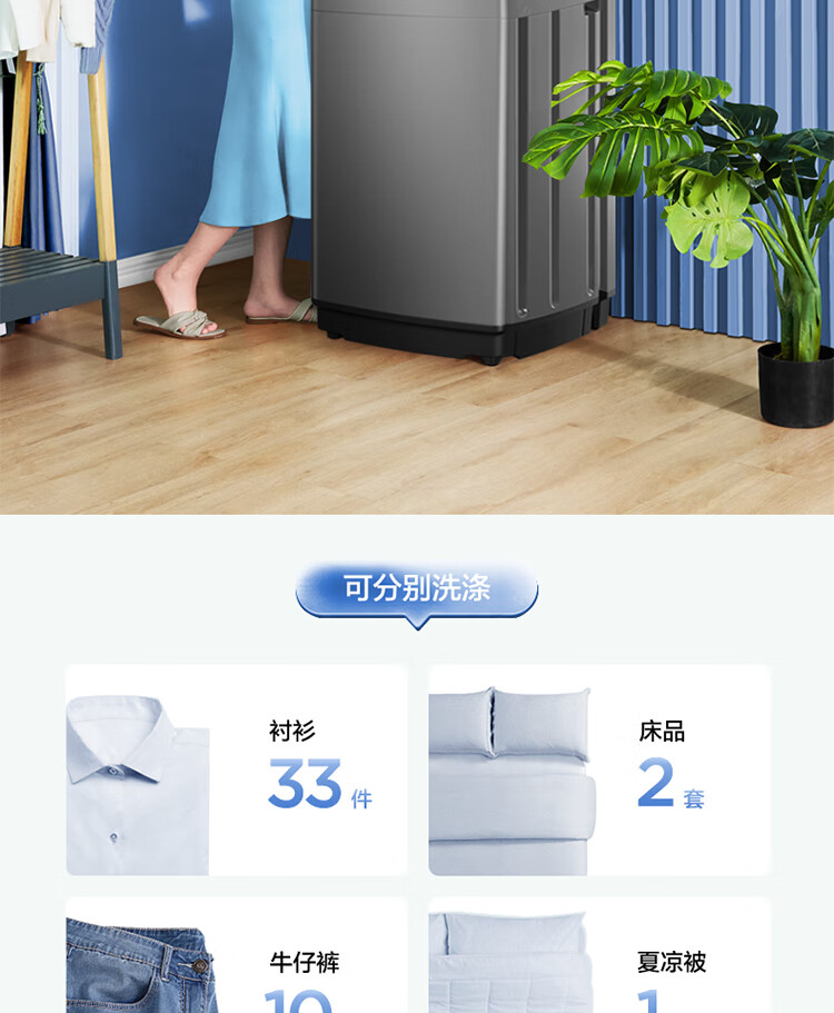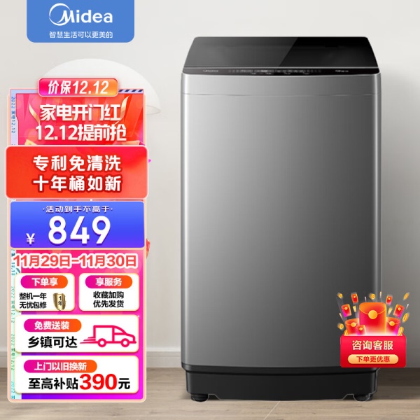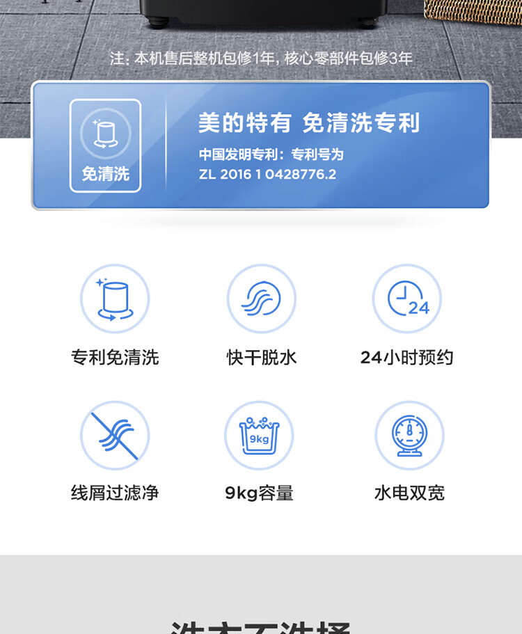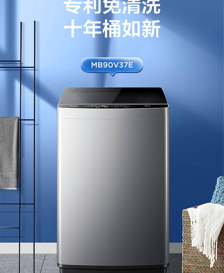 美的(Midea)波轮洗衣机全自动 9公斤大容量 专利免清洗十年桶如新 立方内桶 水电双宽MB90V37E
