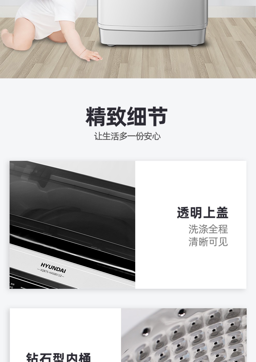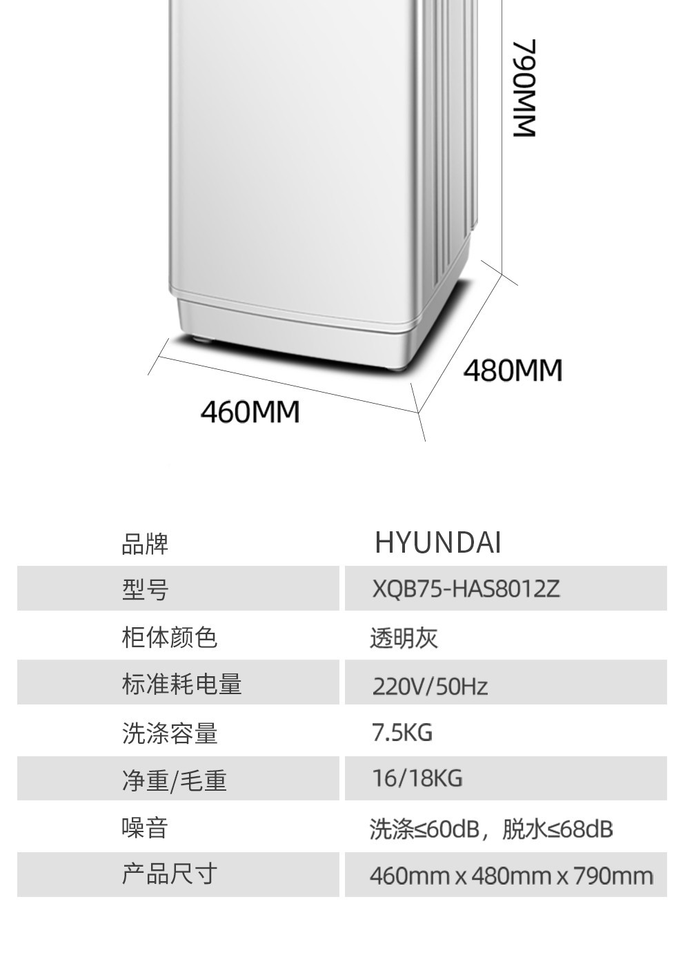 现代(HYUNDAI)8.0KG洗衣机全自动 波轮洗衣机小迷你宿舍租房小型儿童家用