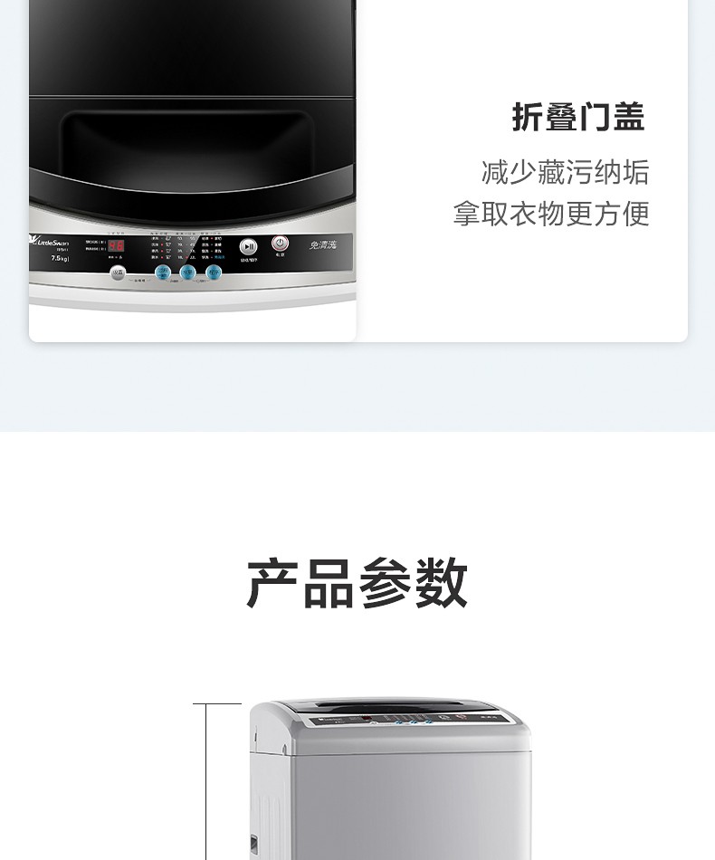 小天鹅(LittleSwan)洗衣机全自动波轮 7.5公斤京品家电小型家用翻盖脱水甩干TB75V20