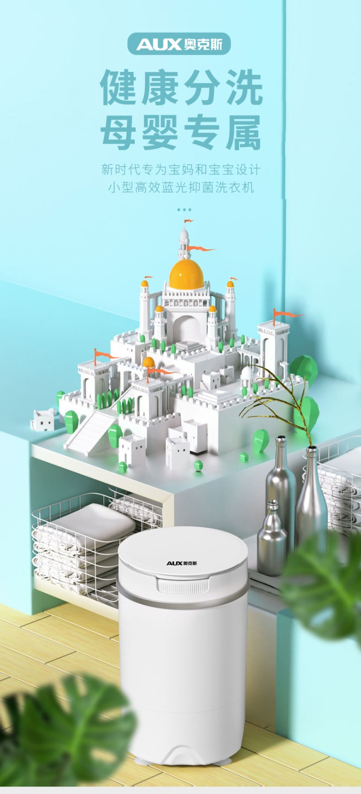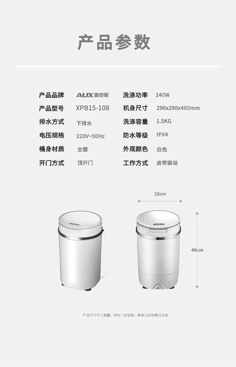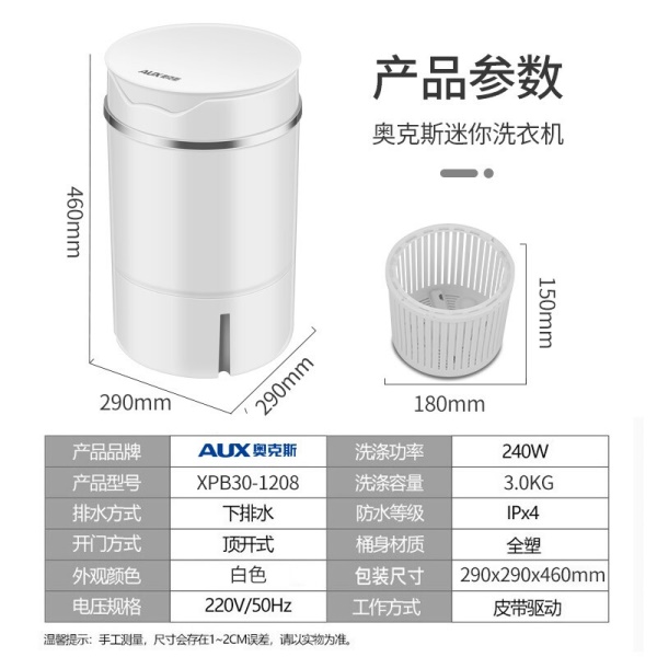 奥克斯(AUX)洗衣机小型迷你家用波轮母婴儿童宝宝单桶半自动内衣内裤清洗机洗袜子机宿舍出租房神器家电
