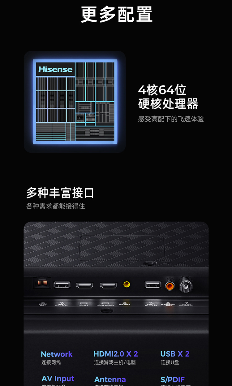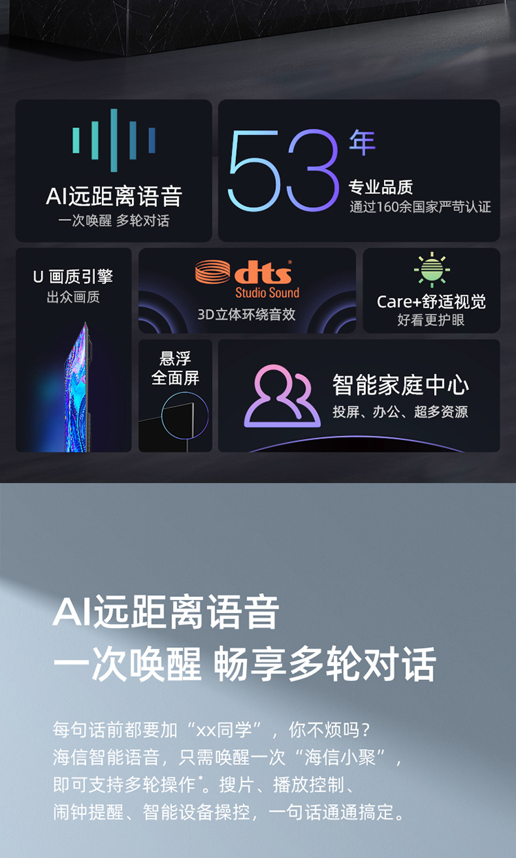 海信电视 65E3G 65英寸 4K超高清护眼智慧屏 超薄悬浮全面屏 远场语音智能液晶平板电视机 一键投屏