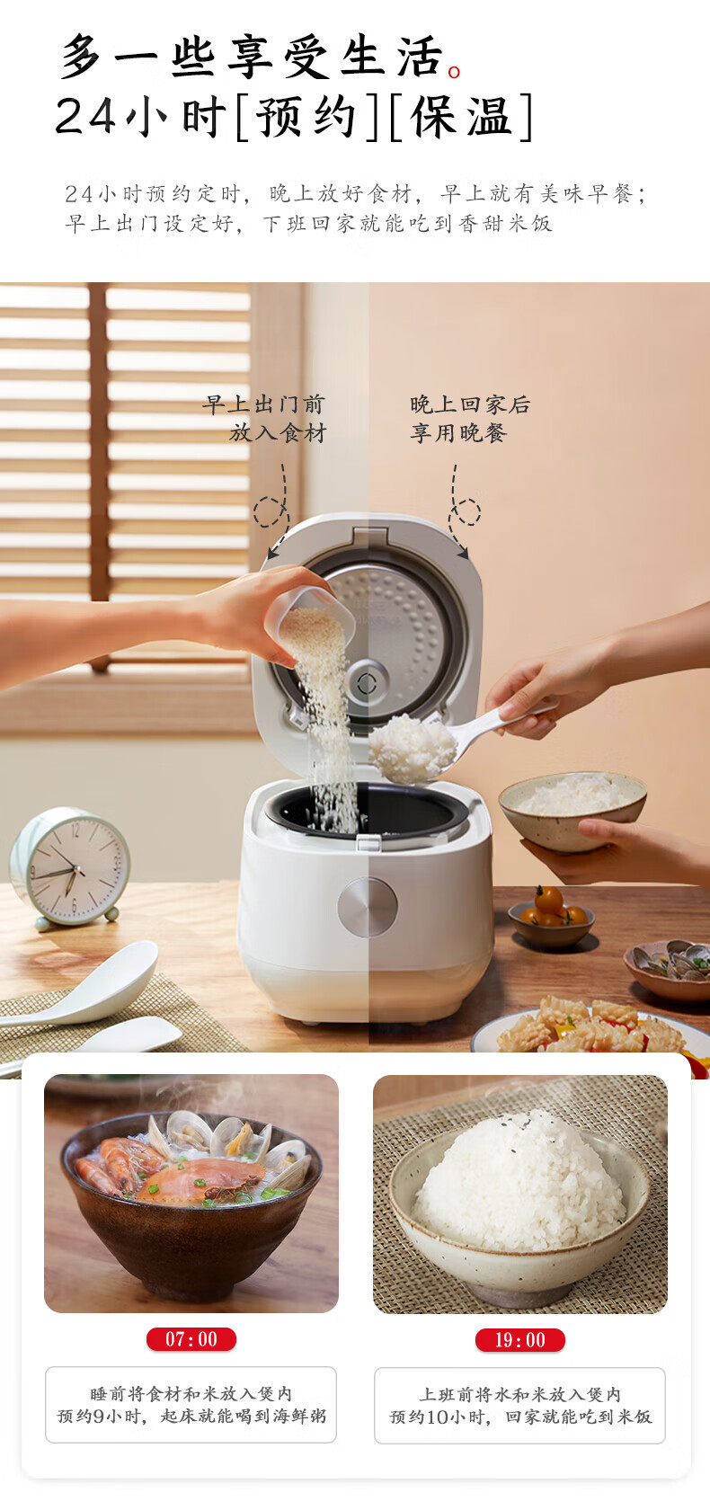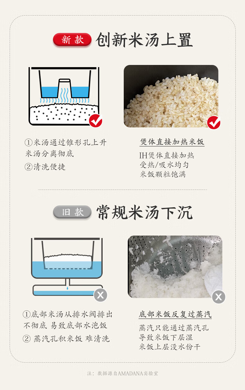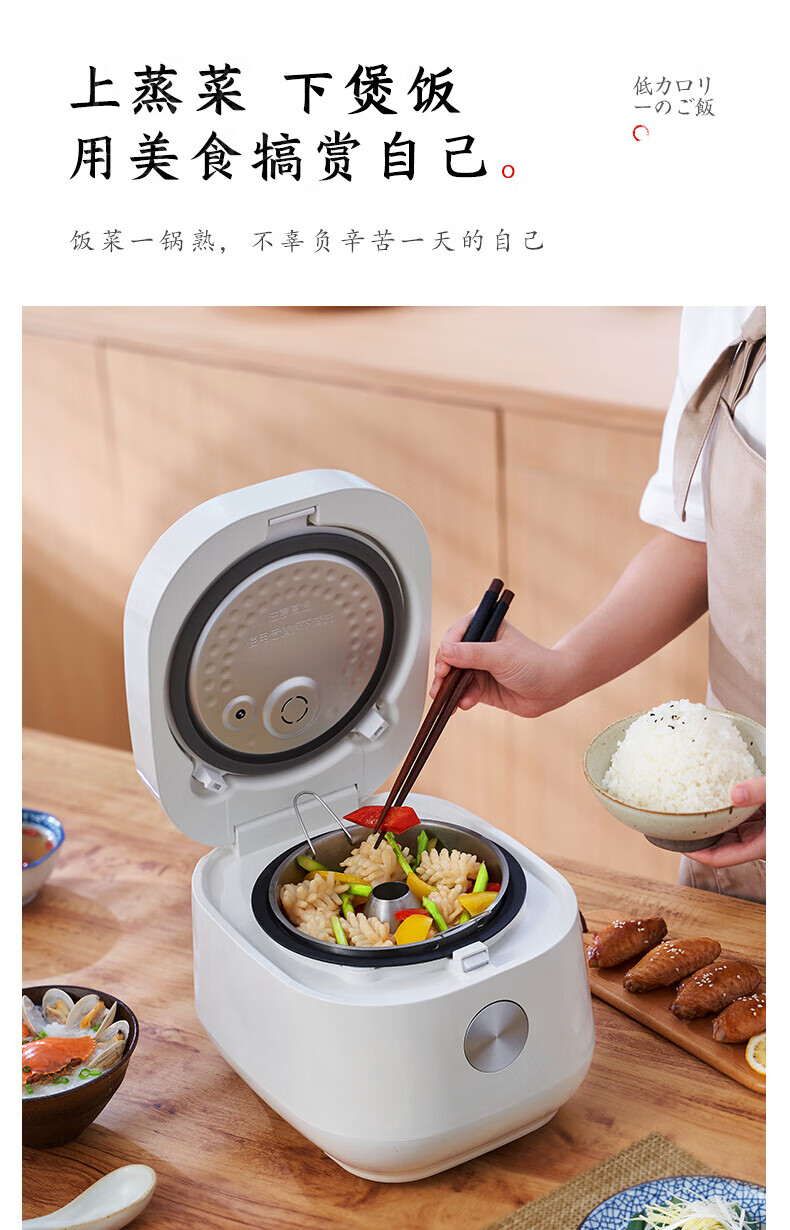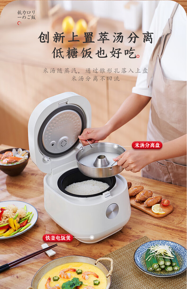 amadana 日本低糖电饭煲 减少淀粉IH蒸煮家用米汤分离电饭锅沥米饭养生智能预约多功能2L3人 新升级3L(白色)