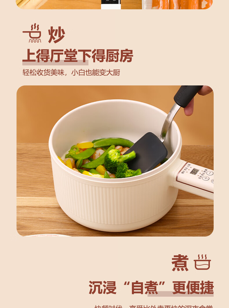 荣事达(Royalstar) 多用途电煮锅宿舍小电锅蒸煮炒一体电火锅陶瓷不粘锅网红小白锅多功能用途锅
