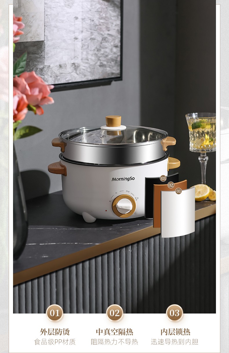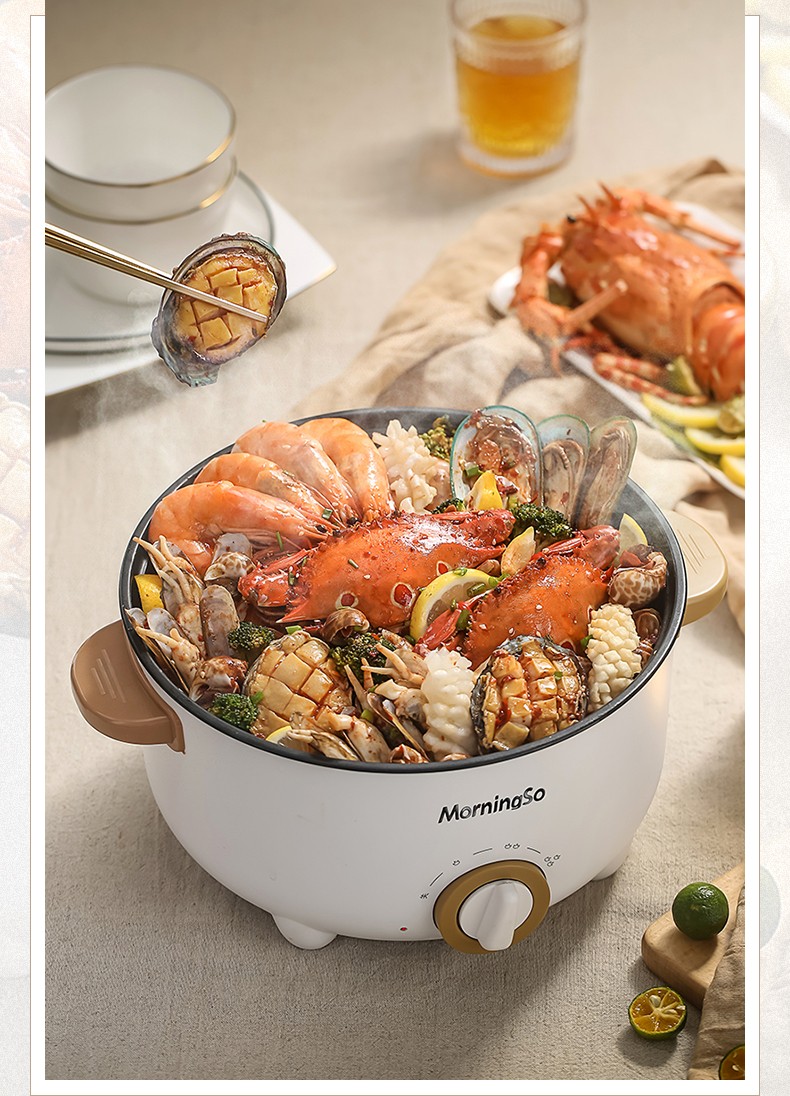 扬子 多功能分体式两用料理锅涮烤一体鸳鸯双味锅火锅家用煎锅不粘锅涮锅大口径煎牛排铁板煎锅电煮锅可拆洗 (1500W