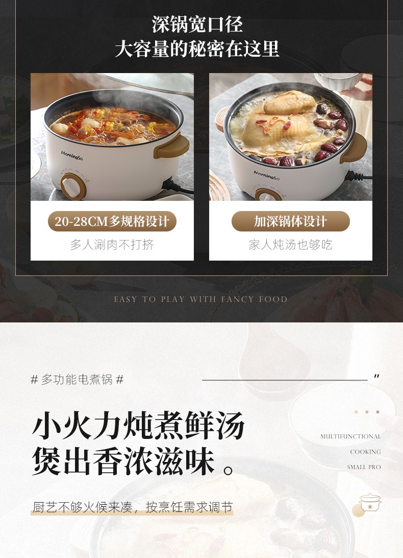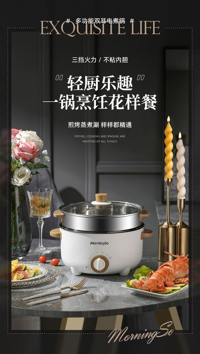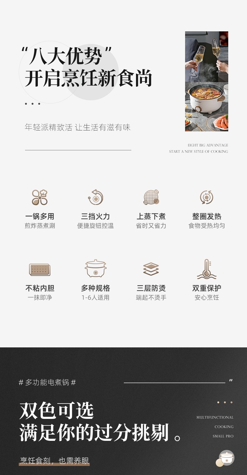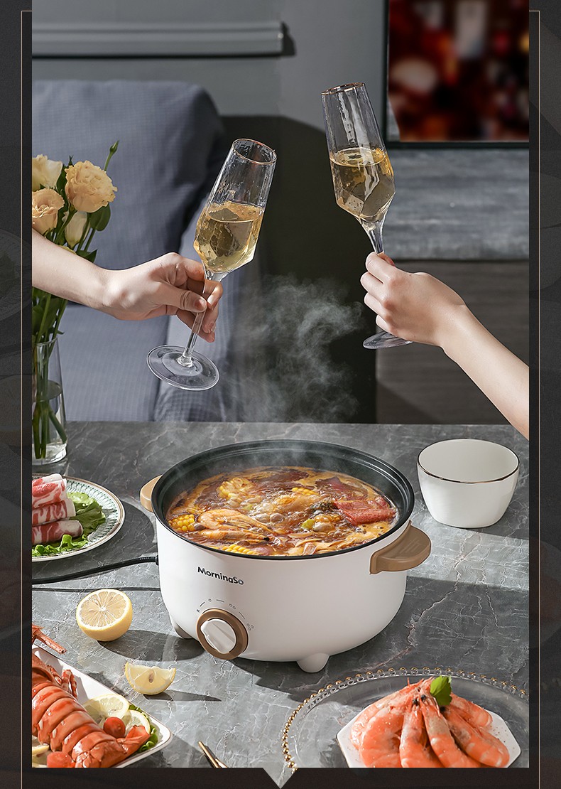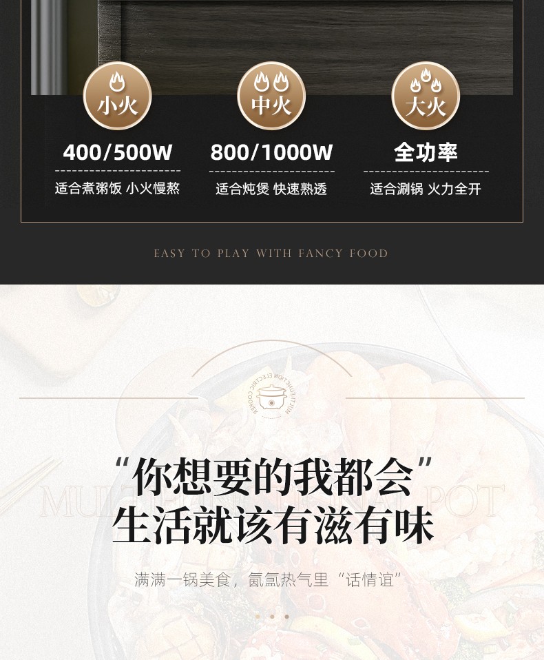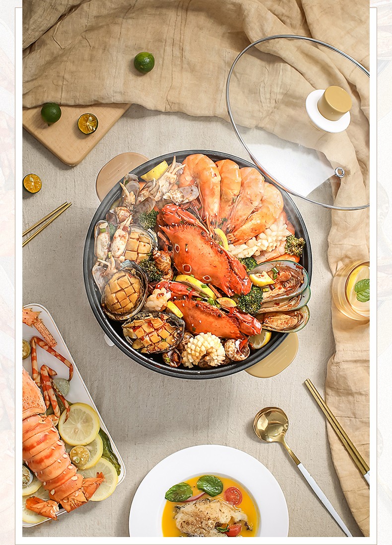 奥克斯(AUX)电火锅 电炒锅 电煮锅 电热锅 电蒸锅 电锅家用多功能多用途锅火锅锅一体锅3.8L