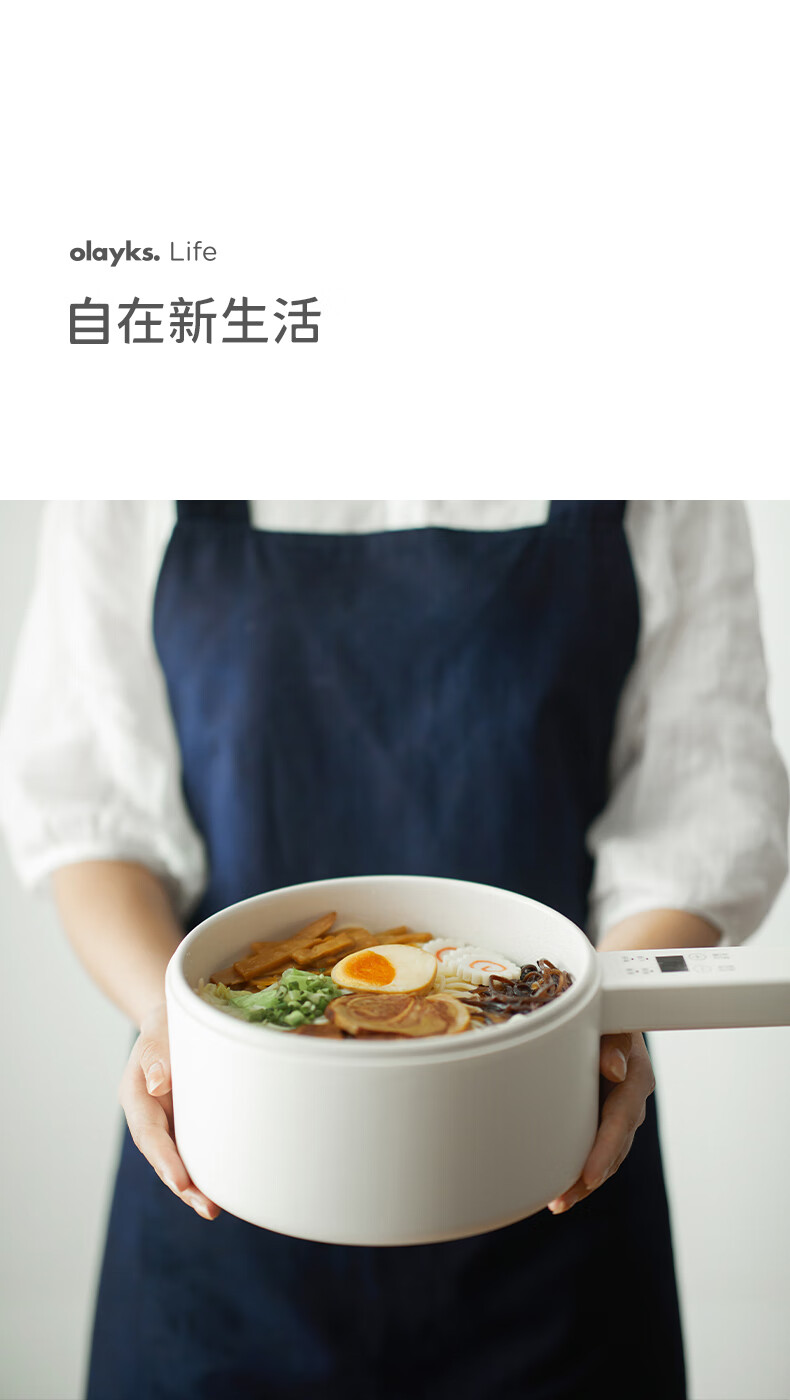 olayks出口原款2L多功能电煮锅泡面锅家用一人电火锅宿舍小锅电蒸锅煎涮单人迷你电热锅电脑款-配蒸笼