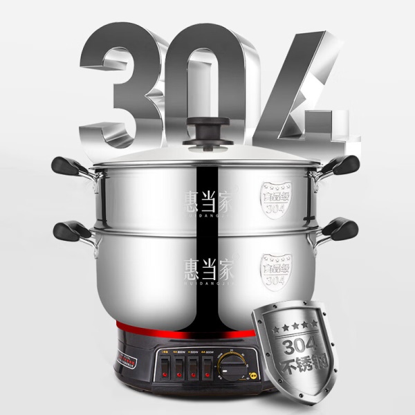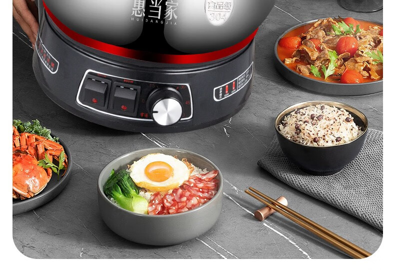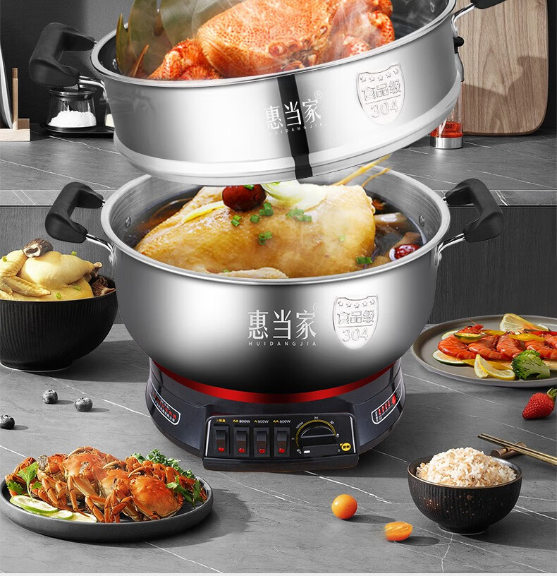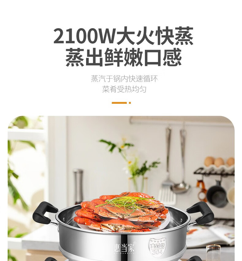 惠当家(Hui Dang Jia) 电锅电热锅电炒锅多功能电锅电蒸锅电火锅定时多用途一体锅 34cm一蒸格(全304定时款)