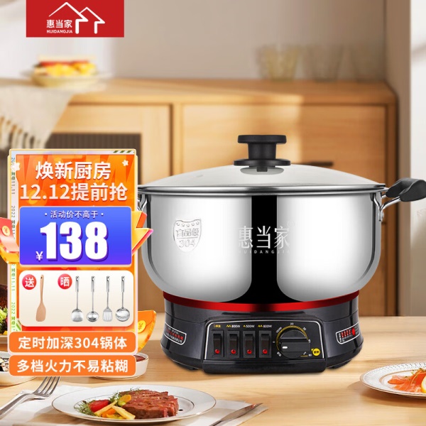惠当家(Hui Dang Jia) 电锅电热锅电炒锅多功能电锅电蒸锅电火锅定时多用途一体锅