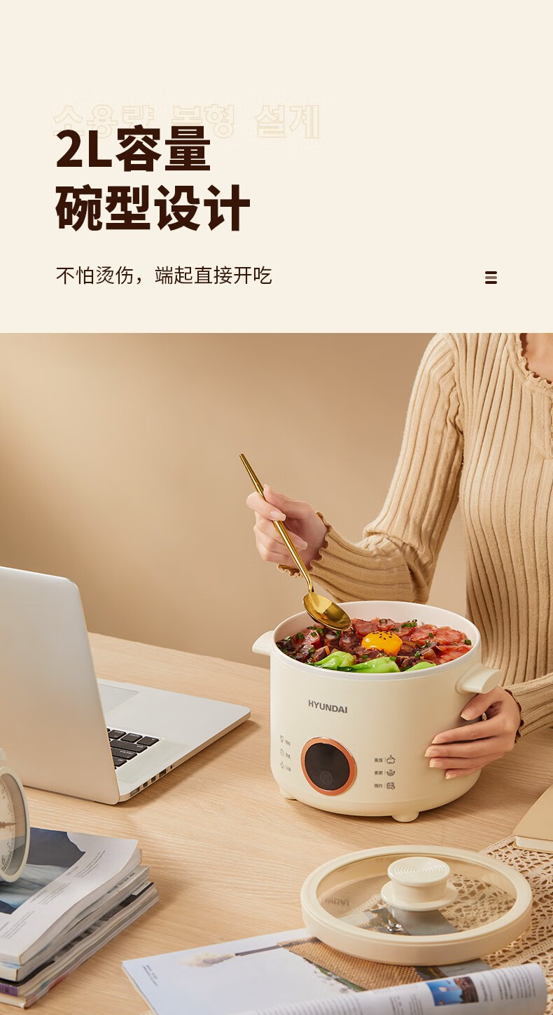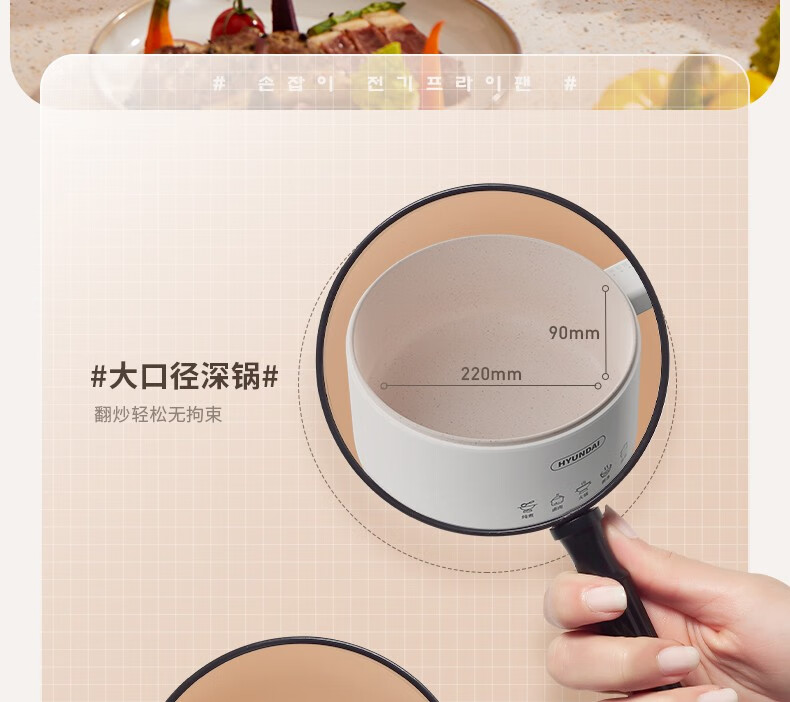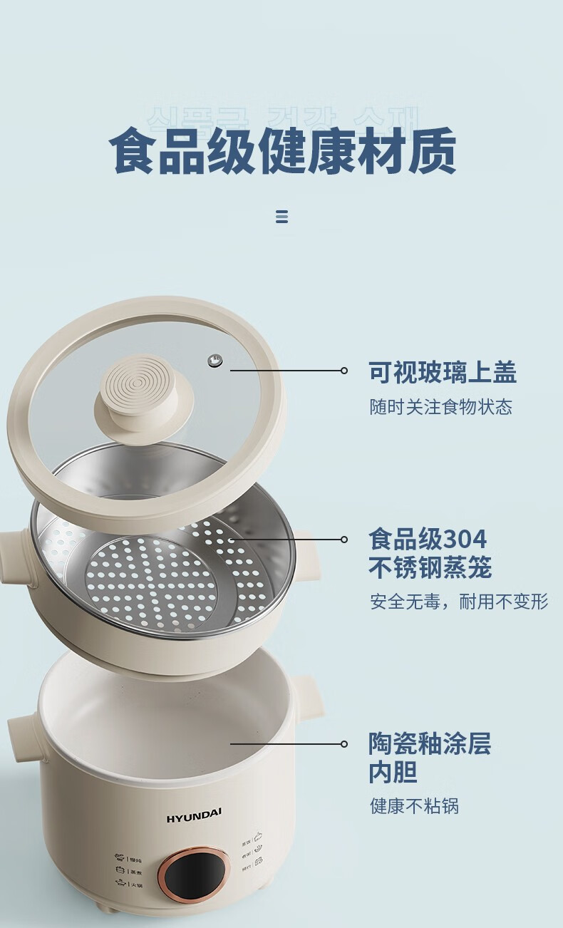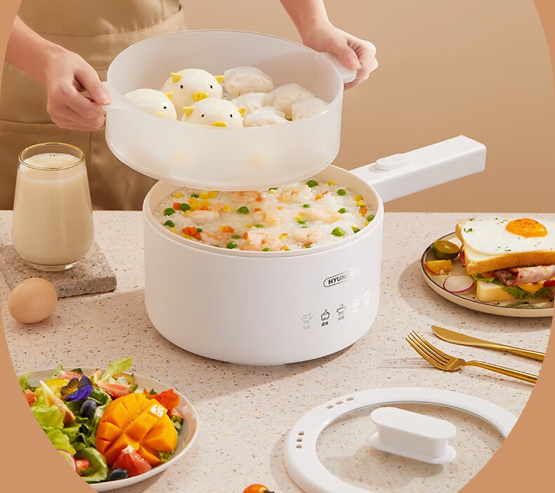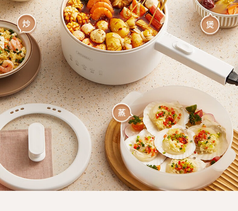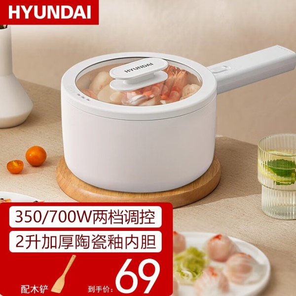 HYUNDAI 电煮锅电火锅陶瓷釉不粘煮面煎蛋电热小炒锅涮火锅宿舍锅小电锅