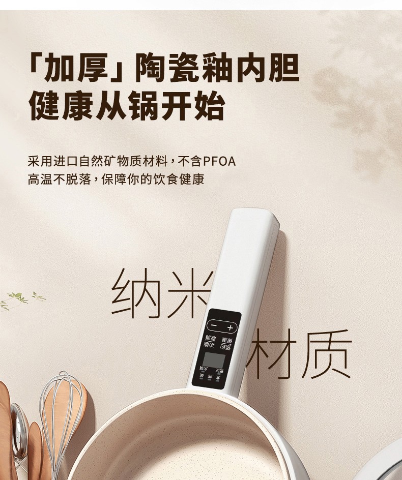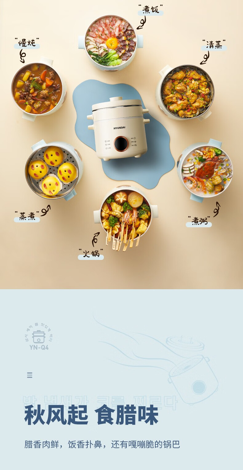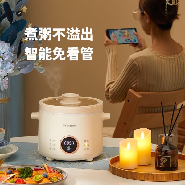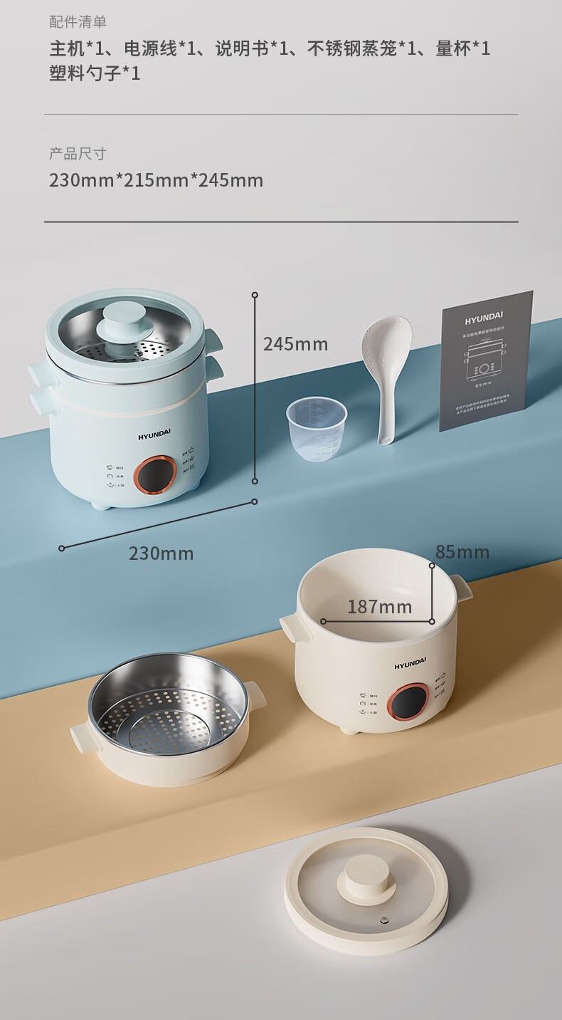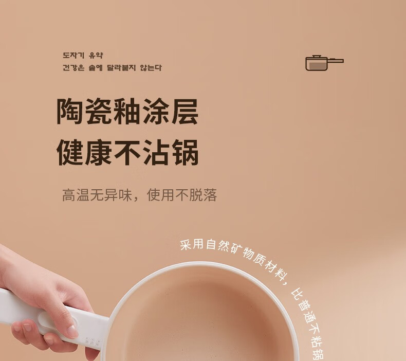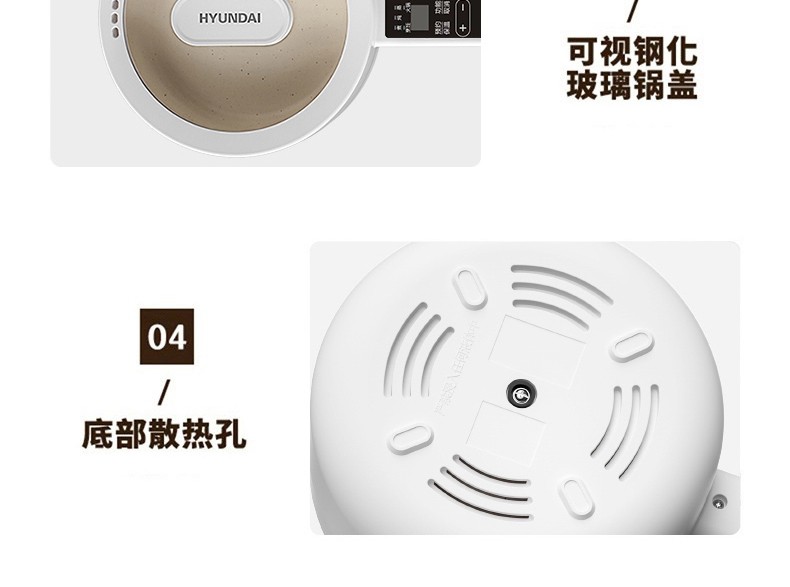 HYUNDAI 电煮锅电火锅陶瓷釉不粘煮面煎蛋电热小炒锅涮火锅宿舍锅小电锅