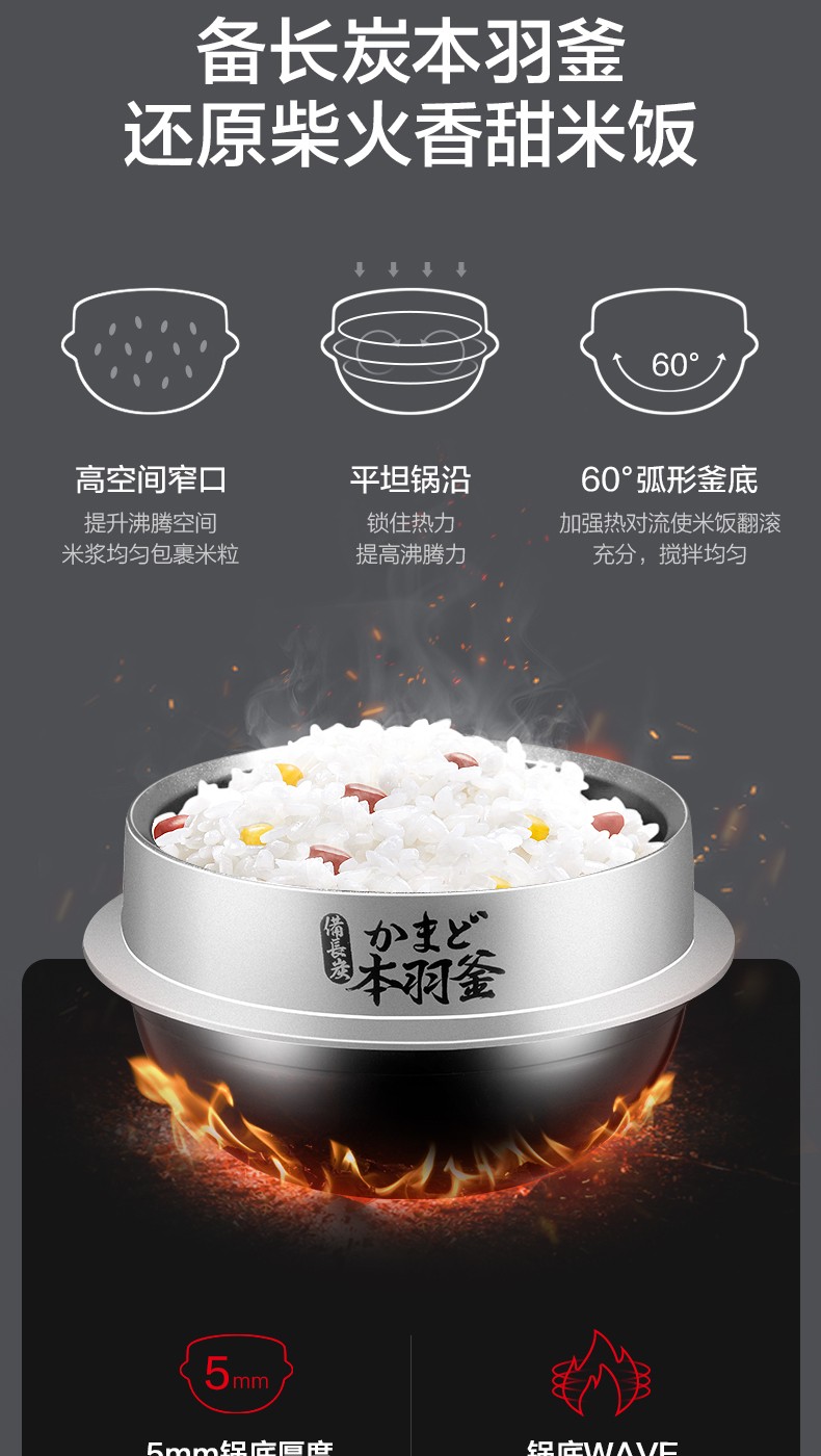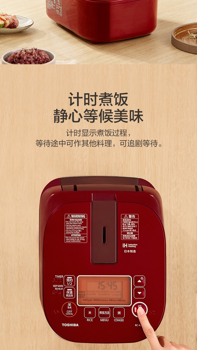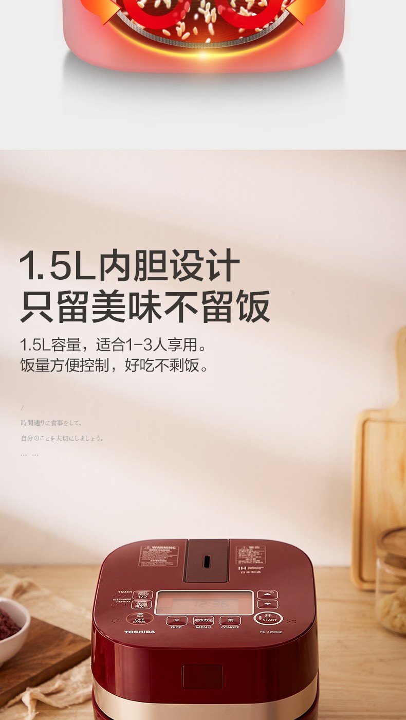 东芝(TOSHIBA) 日本原装进口迷你ih电饭煲小2人1.5升鲜饭煲智能电饭锅备长炭本羽釜煮饭锅 RC-4ZWMC
