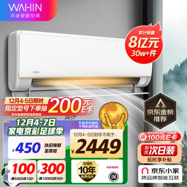 华凌空调 新一级能效 变频冷暖 大风口 1匹 客厅卧室挂式空调挂机智能遥控 京东小家智能生态