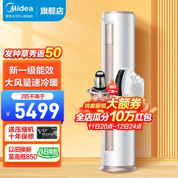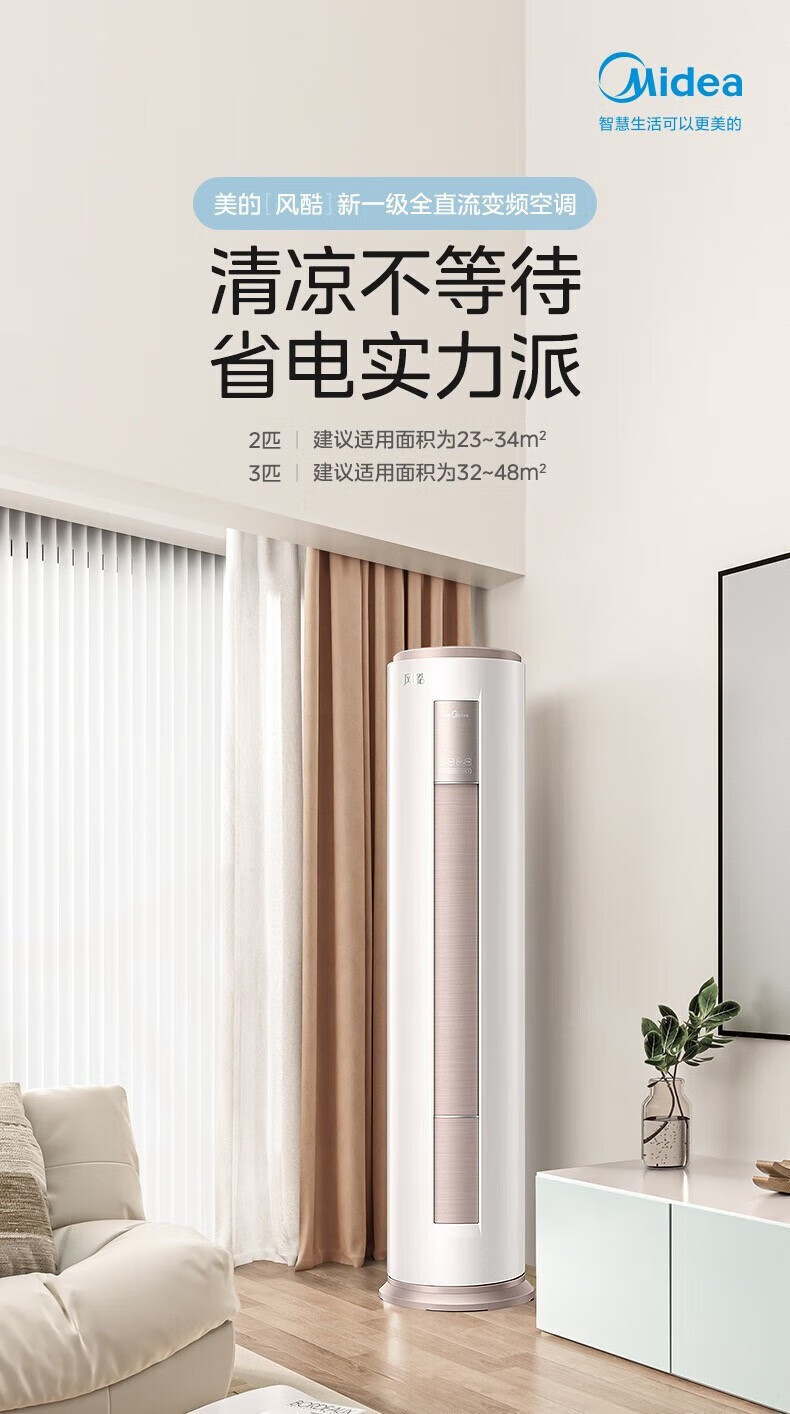 美的(Midea)空调2匹/3匹 风酷新一级能效 变频冷暖 智能家电 自清洁 客厅圆柱空调立式柜机