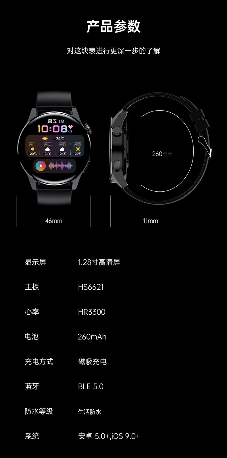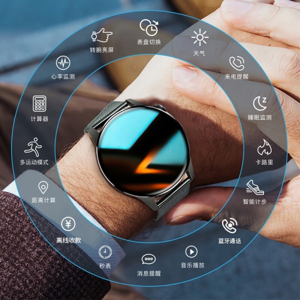 华(HUAWEl)为 通用新智能DOSMET德国品质智能手表男太空人蓝牙通话运动手表血压心率学生国表 【新设计网带黑】【接打电话运动计步贈胶带】