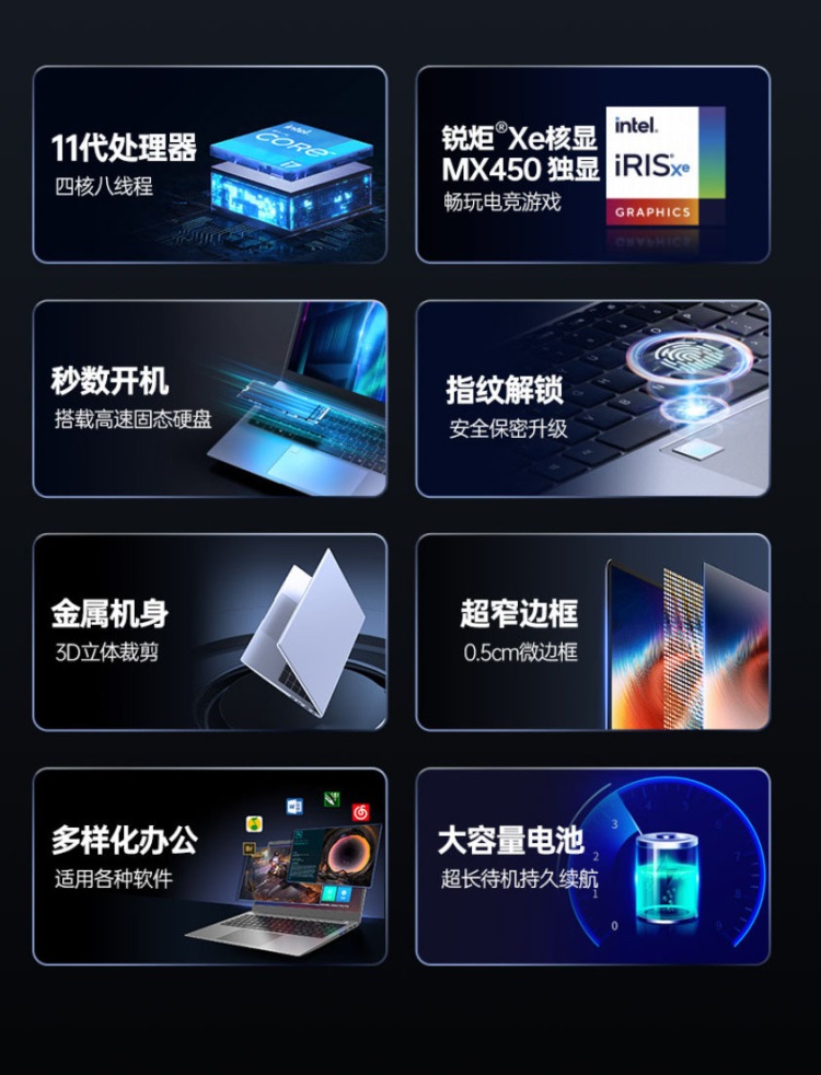 小米粽 笔记本电脑国行2022款英特尔金属轻薄本大学生上网课设计学习商务办公游戏手提 超高配英特尔四核11代+IPS屏窄边全面屏+抗蓝光 8G运行+128G超速硬盘