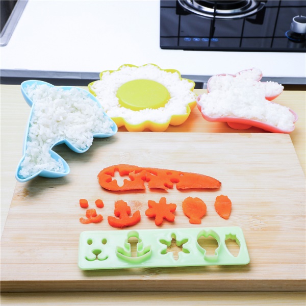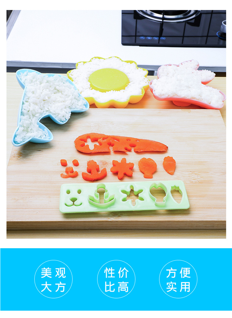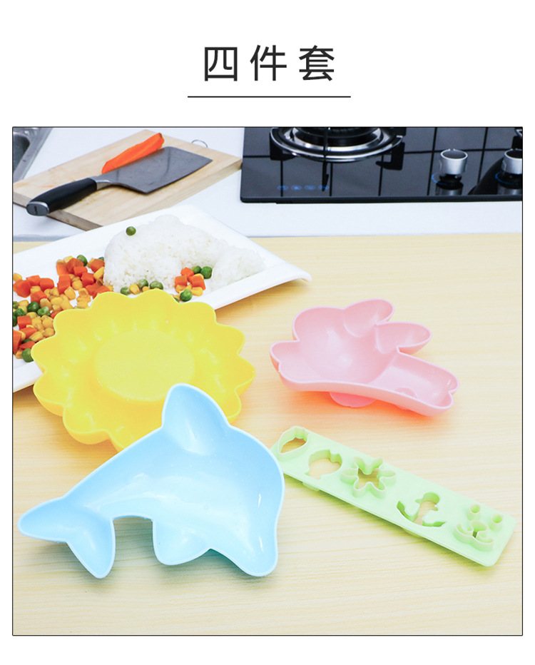 DIY饭团模具宝宝辅食动物压花便当工具 卡通可爱模具四件套