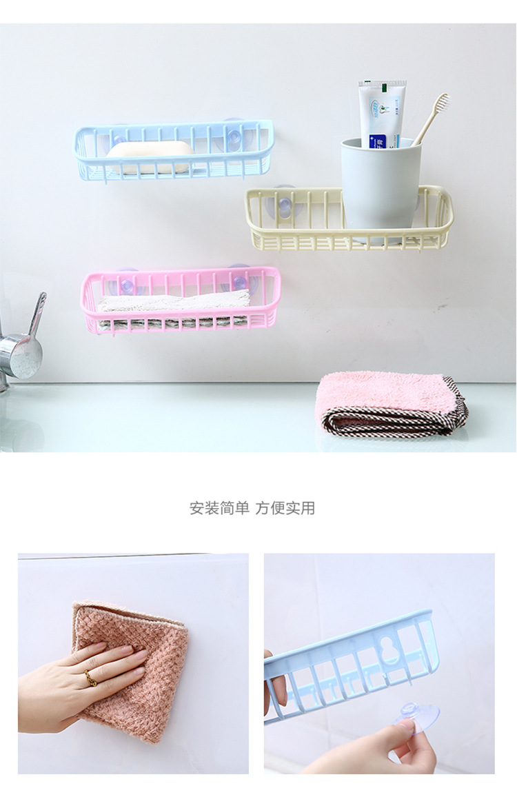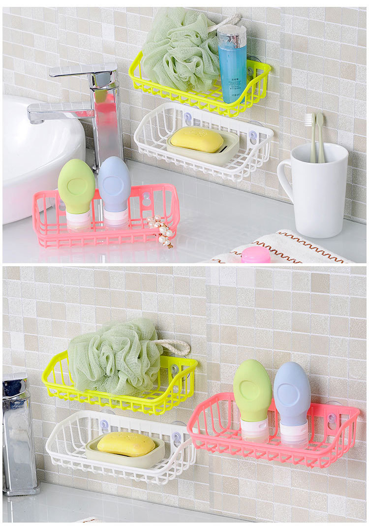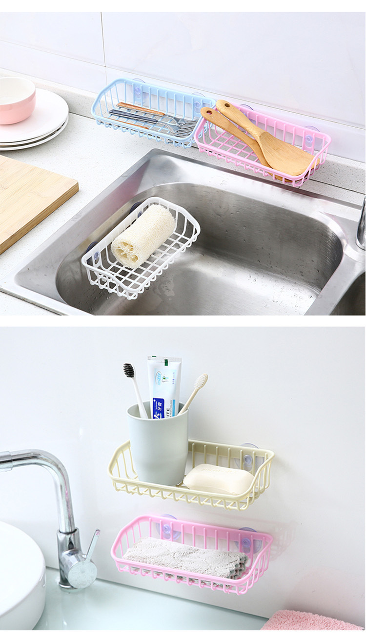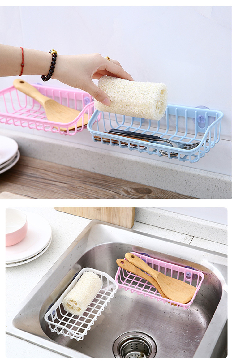 双吸盘厨房沥水篮置物架 家用洗碗海绵收纳架 餐具杂物储物架