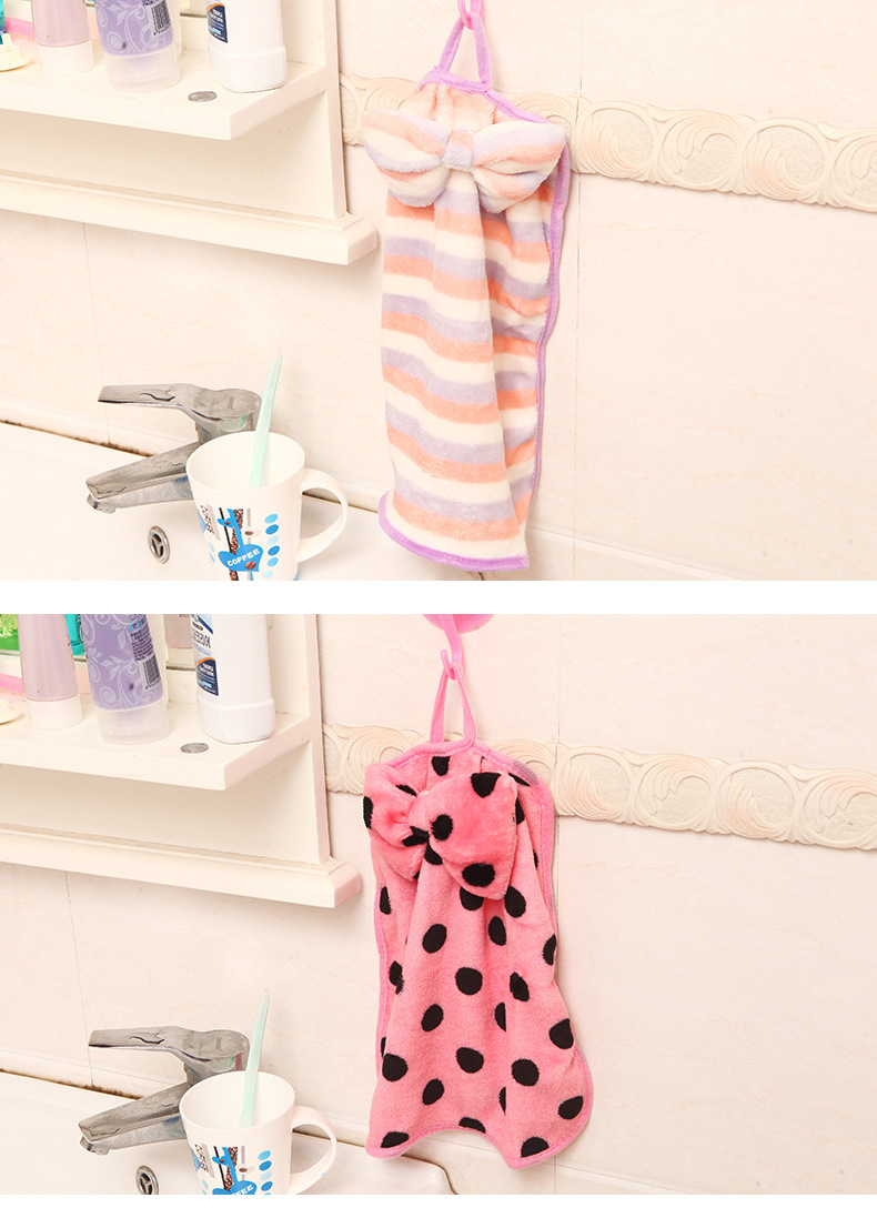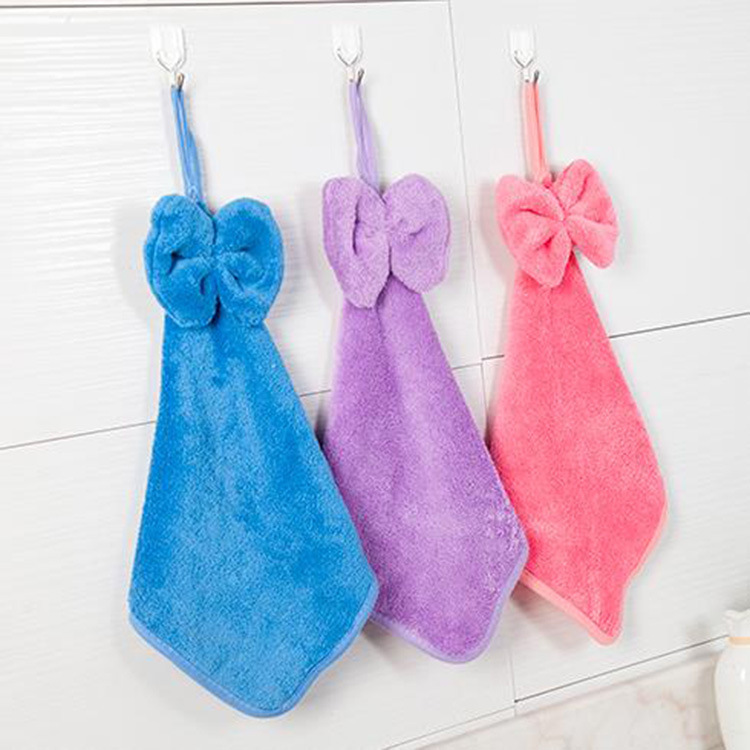 跨境擦手巾甜美蝴蝶结可挂式珊瑚绒擦手巾抹布吸水不掉毛擦手毛巾