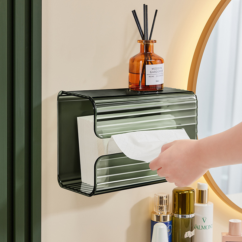 创意轻奢免打孔透明洗脸巾收纳盒家用卫生间厕纸抽纸盒壁挂纸巾盒