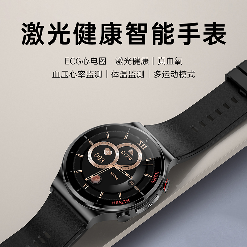 瑞德罗曼 智能手表血压监测激光理疗心率心电图血氧体温 棕色皮带