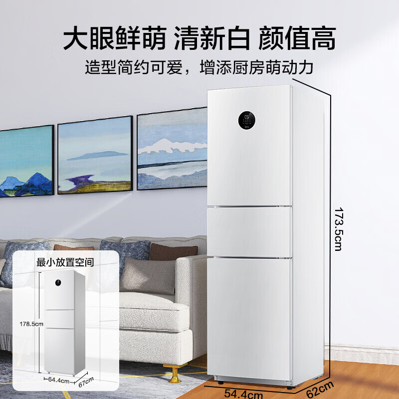 美的(Midea)215升变频一级能效三门家用电冰箱风冷无霜宿舍租房小型小冰箱智能家电节能低噪BCD-215WTPZM(E)