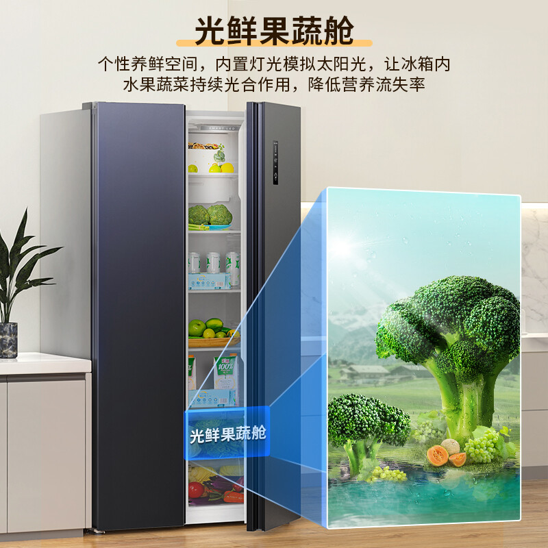 创维(SKYWORTH)【光鲜系列】637升风冷无霜 对开门双开门冰箱 变频一级能效超大容量净味冰箱