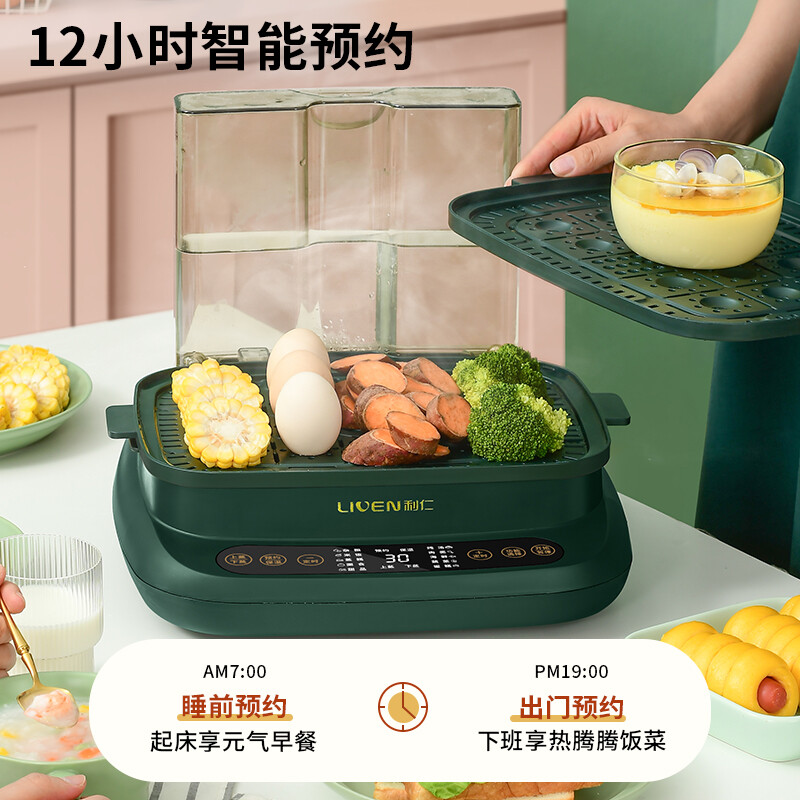 利仁(Liven)电蒸锅家用多功能锅大容量蒸汽锅蒸蛋器电蒸笼电蒸箱上下分蒸不串味电热煮锅可预约定时G-73