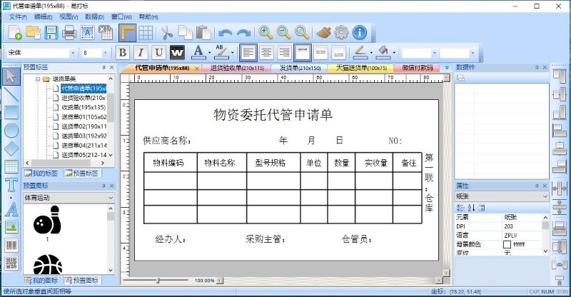 适用于:条形码生成,条形码制作,条形码生成器,条形云标签,易打标 条码生成,电商标签,防伪标签,物流标签,商品标签,销售标签,食品标签,珠宝标签,吊牌,证卡,名片,胸牌等的条码标签设计制作及批量打印。严格遵循Microsoft软件设计的“look and feel”,所见即所得。采用拖拽式设计,是条码标签设计打印软件的优秀开发者。
